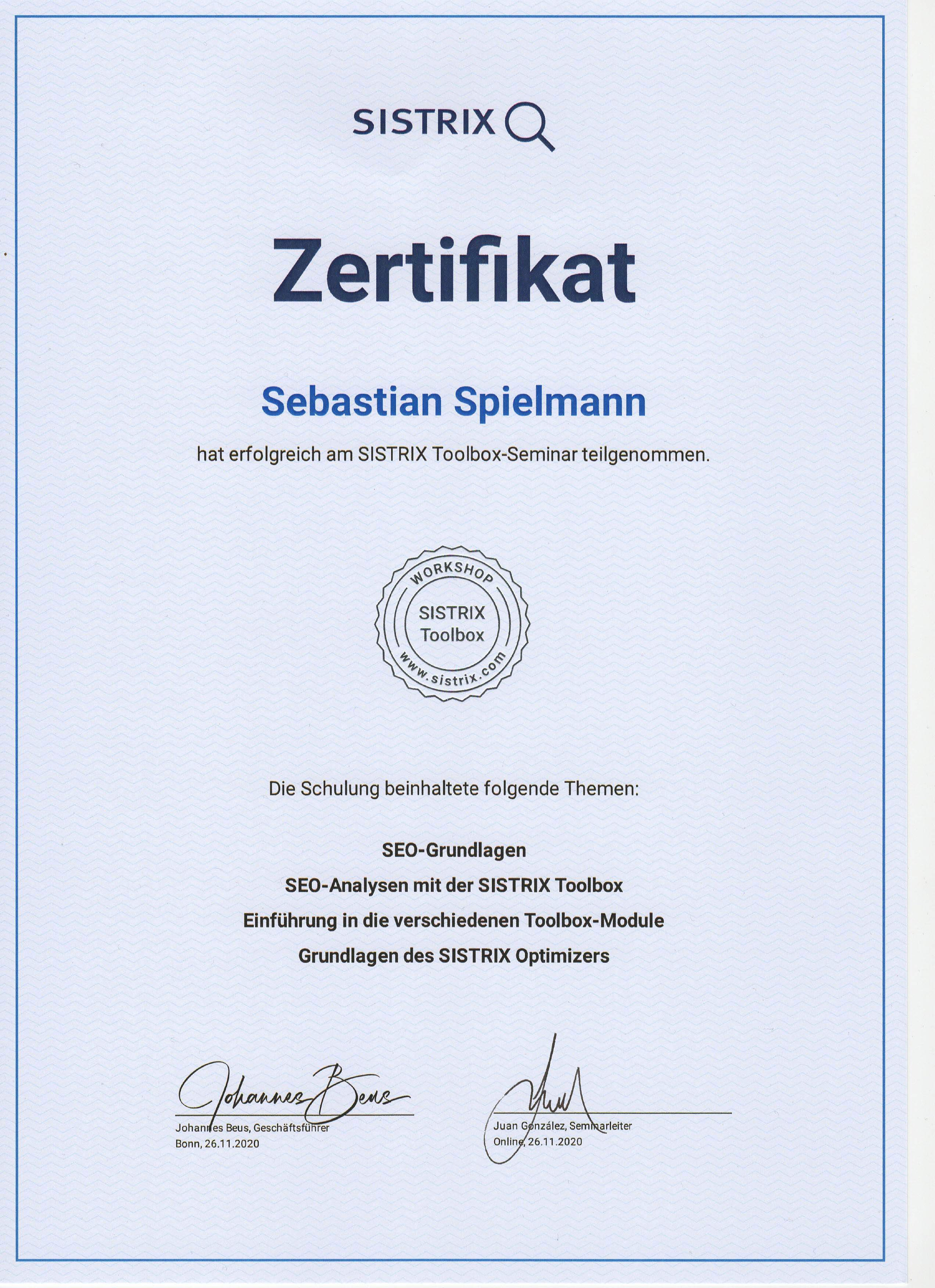 Teilnahme am Sistrix Toolbox Seminar. Zum effizienten Umgang mit der Sistrix Toolbox als SEO.